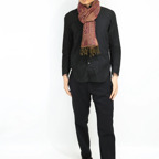 スタンダードな大判サイズの保温性の高いウールストール。落ち着いた色使いで合わせやすい一枚です。