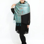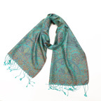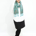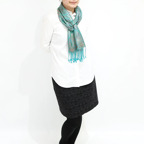 シルク独自の美しい玉虫色の輝き。発色も着け心地もいい、配色ジャカードストールです。