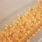 サイズの大きなショールへの手刺繍は長い経験と高い技術を持ったごく一部のマスタリーのみが行います。現在ではこのような手刺繍の技術を受け継ぐ職人はごくわずかとなっており、世界的にも希少な一枚となっています。
