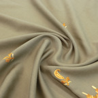 刺繍部は全て手仕事によって行われています。そのため、刺繍の裏地は処理しきれなかった糸が出ている箇所がございます。刺繍部の素材はコットン・レーヨンとなっております。
