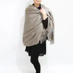 192cm×102cm大判ショールサイズで、巻きでも羽織でもどちらも使いやすいストールです。特に羽織は全面に施された刺繍が美しく輝き、サッとあしらうだけでゴージャスな雰囲気に変化します。横幅が特に長いのでドレスや着物などの羽織物としても重宝します。