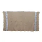 刺繍部は全て手仕事によって行われています。そのため、刺繍の裏地は処理しきれなかった糸が出ている箇所がございます。刺繍部の素材はコットン・レーヨンとなっております。