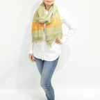 192cm×102cm大判ショールサイズで、巻きでも羽織でもどちらも使いやすいストールです。特に羽織は全面に施された刺繍が美しく輝き、サッとあしらうだけでゴージャスな雰囲気に変化します。横幅が特に長いのでドレスや着物などの羽織物としても重宝します。