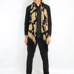 全面に施されたアーリ刺繍は誰もが振り返るほどの美しさ。ひとたび羽織ればパッと華やかにゴージャスな雰囲気に変わります。上半身を覆えるので、着ている服を気にせず合わせることができます。