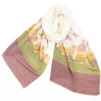 全面に施されたアーリ刺繍が美しく、品の良い女性らしい装いを叶えてくれます。カジュアルな普段使いはもちろん、フォーマルなシーンにも使いやすく、さらに和装とも相性が非常に良くなっています。スタイルや場所を問わず合わせることができる優れたストールです。