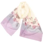 全面に施されたアーリ刺繍が美しく、品の良い女性らしい装いを叶えてくれます。カジュアルな普段使いはもちろん、フォーマルなシーンにも使いやすく、さらに和装とも相性が非常に良くなっています。スタイルや場所を問わず合わせることができる優れたストールです。