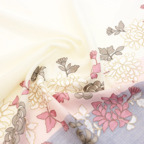 見ているだけでため息が出てしまいそうな美しい刺繍。バランスの良い配色でどんな纏い方をしても上品に装えます。
