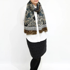 生地感よりカジュアルな普段使いにも、少しフォーマルなシーンでも使いやすいタイプです。スタイルや場所を問わず合わせることができる優れたストールです。