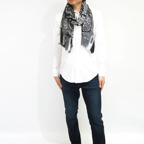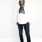 扱いやすいモノトーンベースのペイズリー柄ストール。デザイン性の高さはもちろん、肌触り良さもぜひご体感いただきたい一枚です!