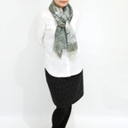 生地感よりカジュアルな普段使いにも、少しフォーマルなシーンでも使いやすいタイプです。スタイルや場所を問わず合わせることができる優れたストールです。