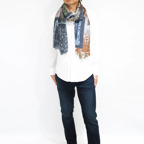 生地感よりカジュアルな普段使いにも、少しフォーマルなシーンでも使いやすいタイプです。スタイルや場所を問わず合わせることができる優れたストールです。