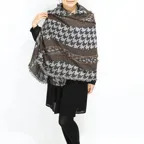 スタンダードな大判サイズで、首に巻くことはもちろん、室内でのひざ掛けにも、肩から羽織る使い方もできます。特に羽織は上半身を覆えるので、着ている服を気にせず合わせることができます。忙しい朝もコーディネートを気にする必要はありません。