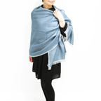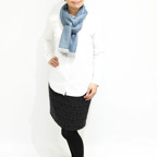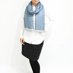 スタンダードな大判サイズで、首に巻くことはもちろん、室内でのひざ掛けにも、肩から羽織る使い方もできます。上半身を覆えるので、着ている服を気にせず合わせることができます。忙しい朝もコーディネートを気にする必要はありません。