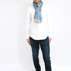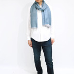 スタンダードな大判サイズで、首に巻くことはもちろん、室内でのひざ掛けにも、肩から羽織る使い方もできます。上半身を覆えるので、着ている服を気にせず合わせることができます。忙しい朝もコーディネートを気にする必要はありません。