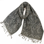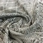 トラディショナルなペイズリー柄とモダンな幾何学柄を組み合わせたウールストール。落ち着き感とアクセント効果が同居した他にはないデザインです。
