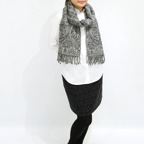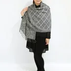 スタンダードな大判サイズで、首に巻くことはもちろん、室内でのひざ掛けにも、肩から羽織る使い方もできます。特に羽織りは、パッと華やかにエレガントな雰囲気に変わります。上半身を覆えるので、着ている服を気にせず合わせることができます。忙しい朝もコーディネートを気にする必要はありません。
