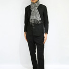 トラディショナルなペイズリー柄とモダンな幾何学柄を組み合わせたウールストール。落ち着き感とアクセント効果が同居した他にはないデザインです。