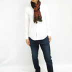 スタンダードな大判サイズで、首に巻くことはもちろん、室内でのひざ掛けにも、肩から羽織る使い方もできます。特に羽織りは、パッと華やかにエレガントな雰囲気に変わります。上半身を覆えるので、着ている服を気にせず合わせることができます。忙しい朝もコーディネートを気にする必要はありません。