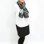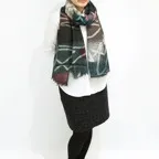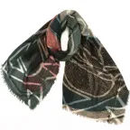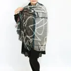 落ち着いたトーンでまとめた趣向を凝らしたショール。チラリとのぞく配色カラーと大判ショールサイズがよりお洒落な印象を引き立てます。