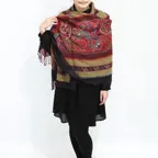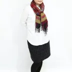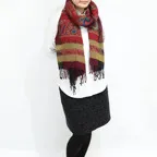 スタンダードな大判サイズで、首に巻くことはもちろん、室内でのひざ掛けにも、肩から羽織る使い方もできます。特に羽織りは、パッと華やかにエレガントな雰囲気に変わります。上半身を覆えるので、着ている服を気にせず合わせることができます。忙しい朝もコーディネートを気にする必要はありません。