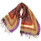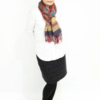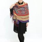 スタンダードな大判サイズで、首に巻くことはもちろん、室内でのひざ掛けにも、肩から羽織る使い方もできます。特に羽織りは、パッと華やかにエレガントな雰囲気に変わります。上半身を覆えるので、着ている服を気にせず合わせることができます。忙しい朝もコーディネートを気にする必要はありません。