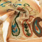 一枚でパッと着映えて、好印象!コーディネートの主役になるレイヤード刺繍ストールです。