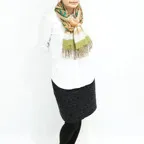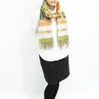 スタンダードな大判サイズで、首に巻くことはもちろん、室内でのひざ掛けにも、肩から羽織る使い方もできます。特に羽織りは、パッと華やかにエレガントな雰囲気に変わります。上半身を覆えるので、着ている服を気にせず合わせることができます。忙しい朝もコーディネートを気にする必要はありません。