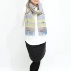 スタンダードな大判サイズで、首に巻くことはもちろん、室内でのひざ掛けにも、肩から羽織る使い方もできます。特に羽織りは、パッと華やかにエレガントな雰囲気に変わります。上半身を覆えるので、着ている服を気にせず合わせることができます。忙しい朝もコーディネートを気にする必要はありません。