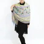 薄手のウール生地を重ね合わせた立体的なレイヤードストール。さらに温かみのある刺繍がアクセントに最適です!