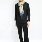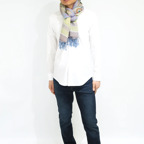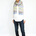 スタンダードな大判サイズで、首に巻くことはもちろん、室内でのひざ掛けにも、肩から羽織る使い方もできます。特に羽織りは、パッと華やかにエレガントな雰囲気に変わります。上半身を覆えるので、着ている服を気にせず合わせることができます。忙しい朝もコーディネートを気にする必要はありません。