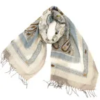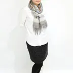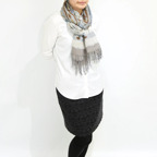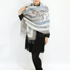 スタンダードな大判サイズで、首に巻くことはもちろん、室内でのひざ掛けにも、肩から羽織る使い方もできます。特に羽織りは、パッと華やかにエレガントな雰囲気に変わります。上半身を覆えるので、着ている服を気にせず合わせることができます。忙しい朝もコーディネートを気にする必要はありません。