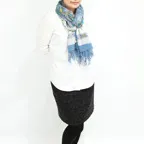 スタンダードな大判サイズで、首に巻くことはもちろん、室内でのひざ掛けにも、肩から羽織る使い方もできます。特に羽織りは、パッと華やかにエレガントな雰囲気に変わります。上半身を覆えるので、着ている服を気にせず合わせることができます。忙しい朝もコーディネートを気にする必要はありません。