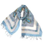 スタンダードな大判サイズで、首に巻くことはもちろん、室内でのひざ掛けにも、肩から羽織る使い方もできます。特に羽織りは、パッと華やかにエレガントな雰囲気に変わります。上半身を覆えるので、着ている服を気にせず合わせることができます。忙しい朝もコーディネートを気にする必要はありません。