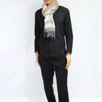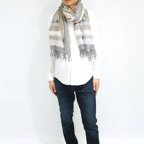 スタンダードな大判サイズで、首に巻くことはもちろん、室内でのひざ掛けにも、肩から羽織る使い方もできます。特に羽織りは、パッと華やかにエレガントな雰囲気に変わります。上半身を覆えるので、着ている服を気にせず合わせることができます。忙しい朝もコーディネートを気にする必要はありません。
