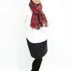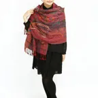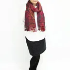 スタンダードな大判サイズで、首に巻くことはもちろん、室内でのひざ掛けにも、肩から羽織る使い方もできます。特に羽織りは、パッと華やかにエレガントな雰囲気に変わります。上半身を覆えるので、着ている服を気にせず合わせることができます。忙しい朝もコーディネートを気にする必要はありません。