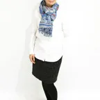 スタンダードな大判サイズで、首に巻くことはもちろん、室内でのひざ掛けにも、肩から羽織る使い方もできます。特に羽織りは、パッと華やかにエレガントな雰囲気に変わります。上半身を覆えるので、着ている服を気にせず合わせることができます。忙しい朝もコーディネートを気にする必要はありません。