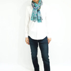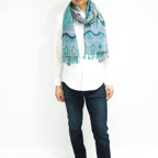 スタンダードな大判サイズで、首に巻くことはもちろん、室内でのひざ掛けにも、肩から羽織る使い方もできます。特に羽織りは、パッと華やかにエレガントな雰囲気に変わります。上半身を覆えるので、着ている服を気にせず合わせることができます。忙しい朝もコーディネートを気にする必要はありません。