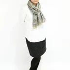 スタンダードな大判サイズで、首に巻くことはもちろん、室内でのひざ掛けにも、肩から羽織る使い方もできます。特に羽織りは、パッと華やかにエレガントな雰囲気に変わります。上半身を覆えるので、着ている服を気にせず合わせることができます。忙しい朝もコーディネートを気にする必要はありません。