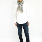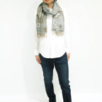 スタンダードな大判サイズで、首に巻くことはもちろん、室内でのひざ掛けにも、肩から羽織る使い方もできます。特に羽織りは、パッと華やかにエレガントな雰囲気に変わります。上半身を覆えるので、着ている服を気にせず合わせることができます。忙しい朝もコーディネートを気にする必要はありません。