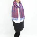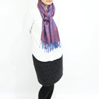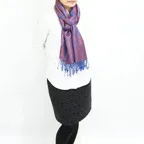 スタンダートな大判サイズで巻いても羽織っても、どちらも使いやすいタイプです。特に羽織は全体の印象がパッと華やかに、エレガントな雰囲気に変化します。