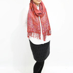 スタンダートな大判サイズで巻いても羽織っても、どちらも使いやすいタイプです。特に羽織は全体の印象がパッと華やかに、エレガントな雰囲気に変化します。