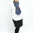 生地感よりカジュアルな普段使いにも、少しフォーマルなシーンでも使いやすいタイプです。スタイルや場所を問わず合わせることができる優れたストールです。