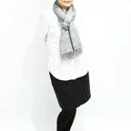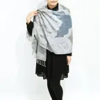 スタンダードな大判サイズで、首に巻くことはもちろん、室内でのひざ掛けにも、肩から羽織る使い方もできます。特に羽織りは、パッと華やかにエレガントな雰囲気に変わります。上半身を覆えるので、着ている服を気にせず合わせることができます。忙しい朝もコーディネートを気にする必要はありません。