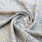 スタンダードな大判サイズで、首に巻くことはもちろん、室内でのひざ掛けにも、肩から羽織る使い方もできます。特に羽織りは、パッと華やかにエレガントな雰囲気に変わります。上半身を覆えるので、着ている服を気にせず合わせることができます。忙しい朝もコーディネートを気にする必要はありません。
