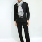 透け感のある生地で想像以上にスッキリまとまります。アウターの中にも収めやすく、インにアウトに扱いやすいストールです。