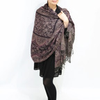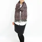 他にはない大判ショール。ゆるっと巻くだけで立体感のある表情を作ることができ、纏えば上半身をすっぽりと覆うことができます。