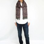 他にはない大判ショール。ゆるっと巻くだけで立体感のある表情を作ることができ、纏えば上半身をすっぽりと覆うことができます。