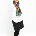大判の長方形で、端面はナチュラルな断ち切り加工を施しています。どんな巻き方をしても表情豊かでお洒落な印象になります。また、折りたたんで使えばスッキリとシャープなシルエットになります。