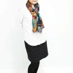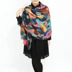 スタンダードなサイズ感で巻きでも羽織でも扱いやすく、室内のひざ掛けにも重宝します。用途を変えて様々な形で活用できる優れたストールです。