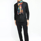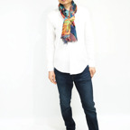 大判の長方形で、端面はナチュラルな断ち切り加工を施しています。どんな巻き方をしても表情豊かでお洒落な印象になります。また、折りたたんで使えばスッキリとシャープなシルエットになります。